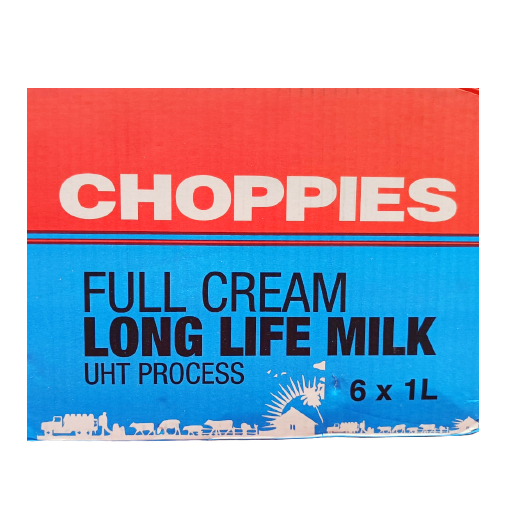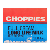 HOME ›› EDIBLE GROCERIES ›› DAIRY LONGLIFE/SUBSTITUTES ›› UHT MILK ›› CHOPPIES 1L F/CREAM MILK PACK*6
